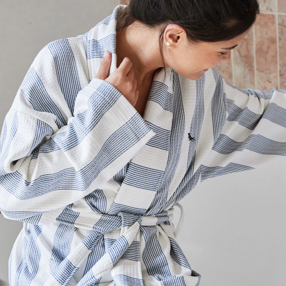 Wrap yourself in Dock & Bay’s signature, quick drying waffle fabric and take your self care to a whole new level. Made from 100% recycled materials, our Bathrobes are sumptuously soft, super absorbent and dry 2x faster than regular cotton – so no problem if you spill your evening hot chocolate on it… Quick dry robe One size fits all Unique, thick waffle material Spa day style softness Dries 2x faster than regular cotton Super absorbent Made from 100% recycled materials Compact & lightweight