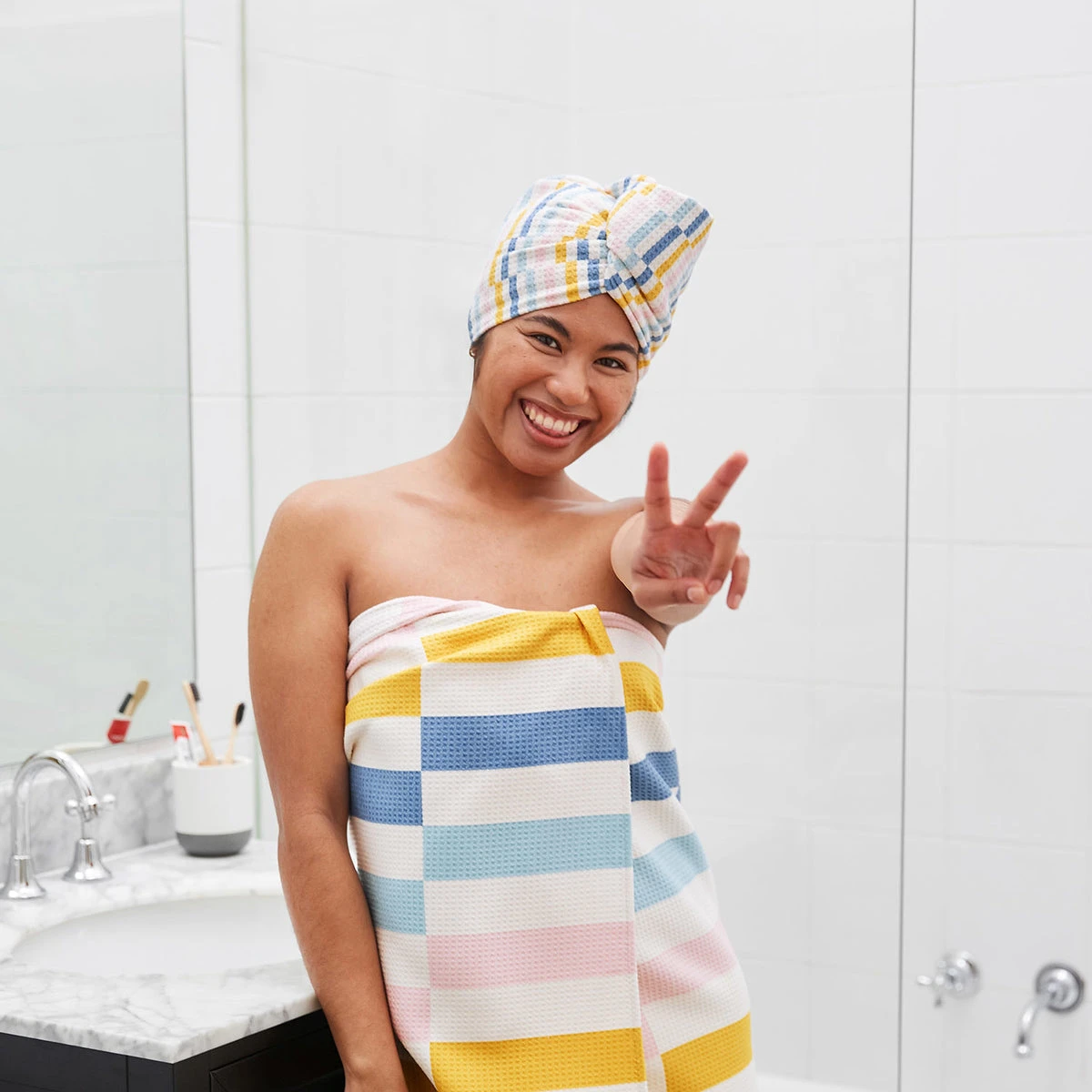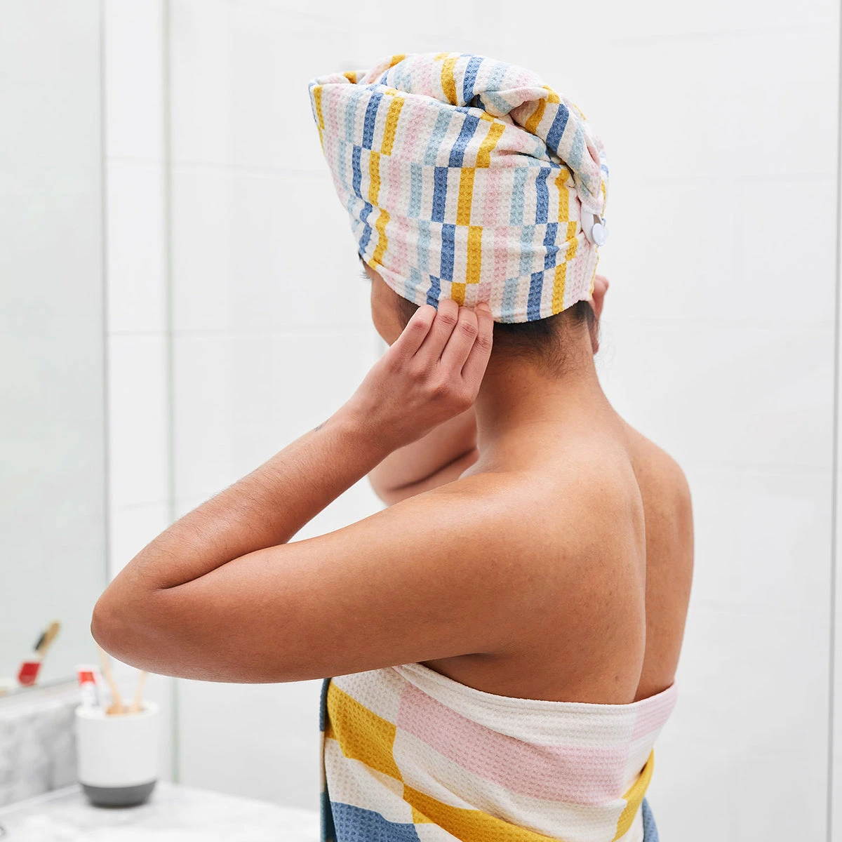 Late for work? Or worse, the party? Cut your drying in half and spend less time using the hair dryer with super absorbent Hair Wraps. Grab our premium waffle-fabric hair towel designed to extract excess moisture while staying lightweight and fabulous.