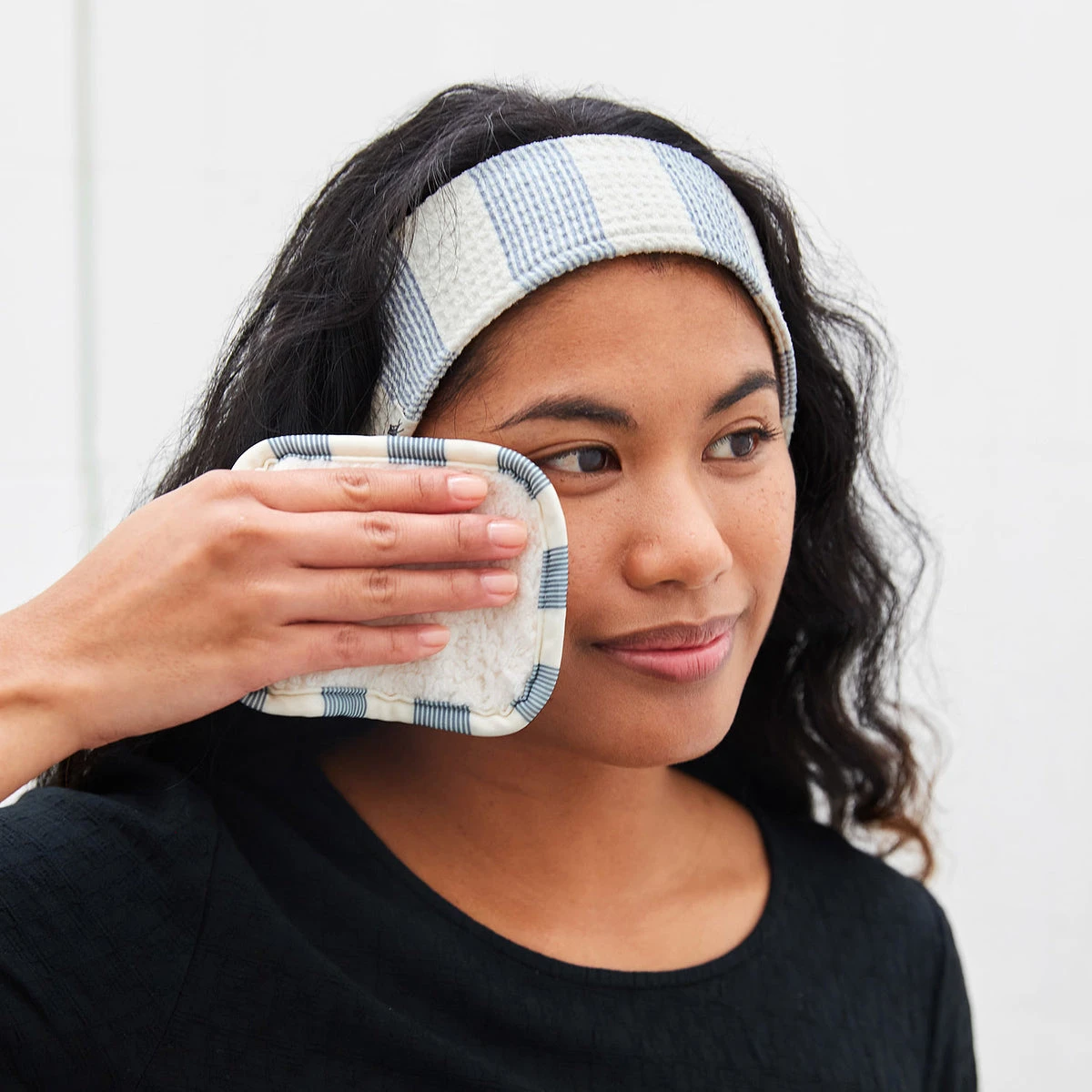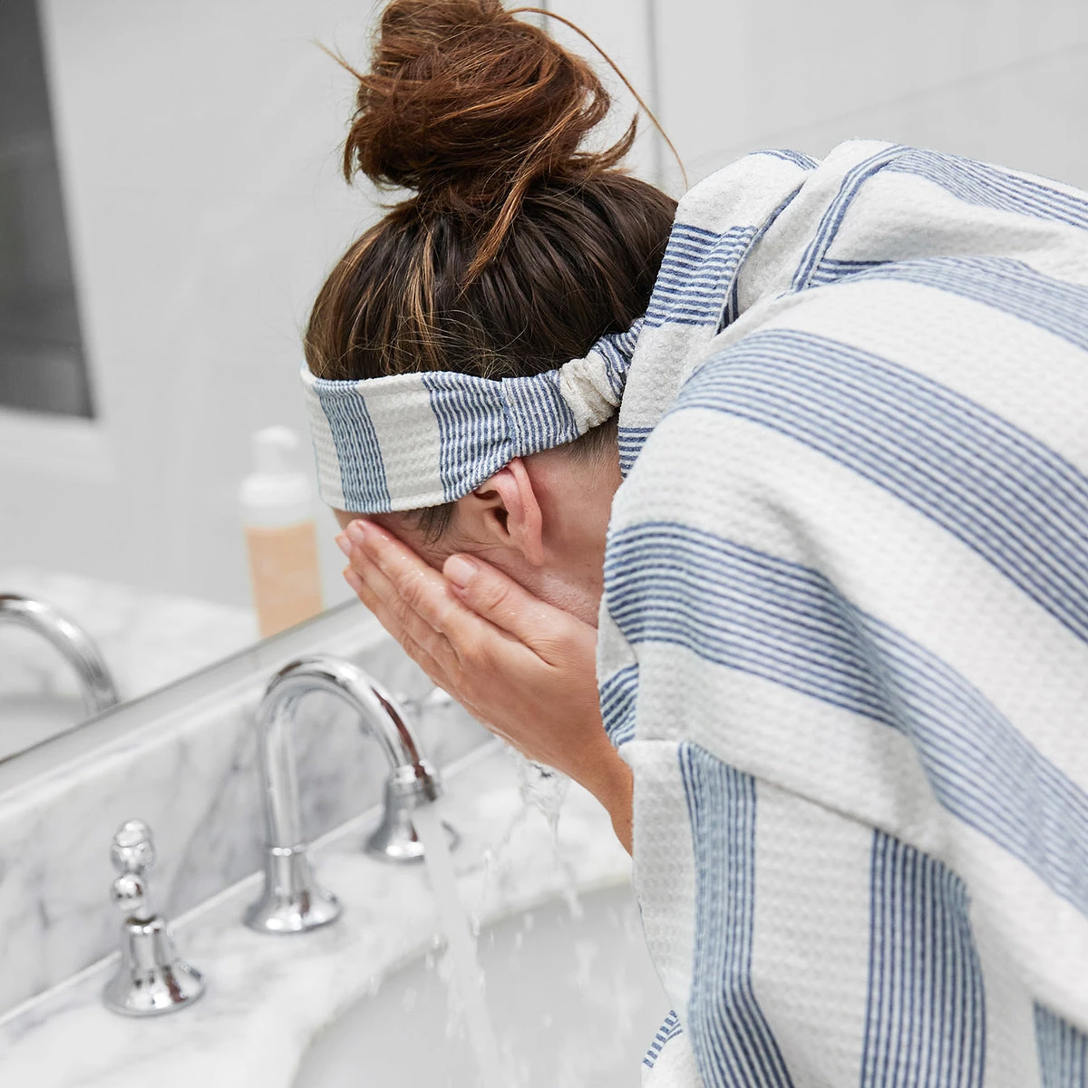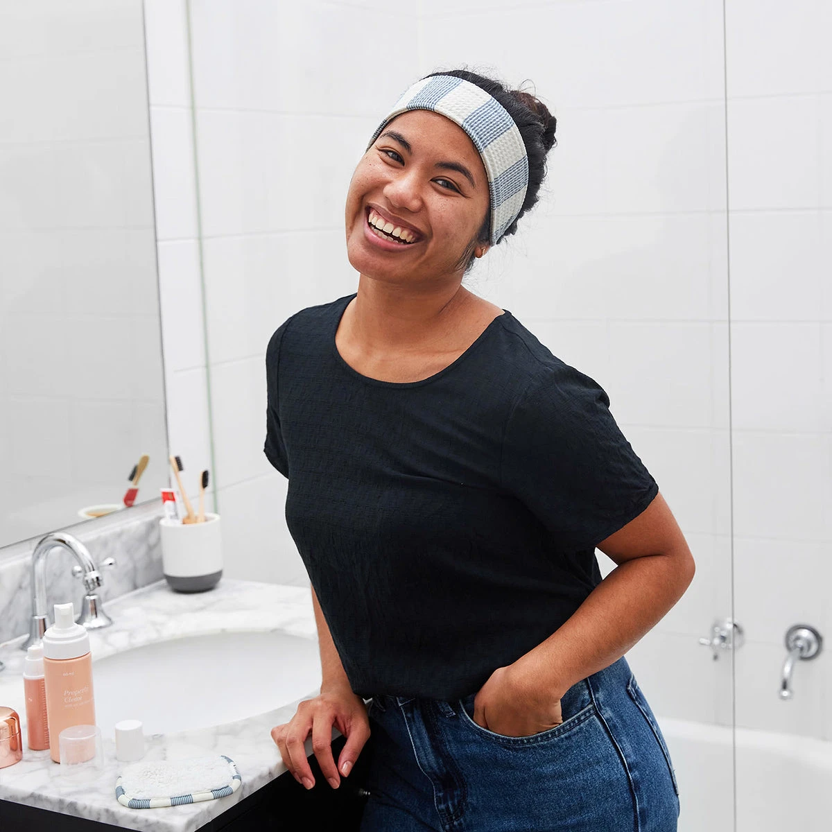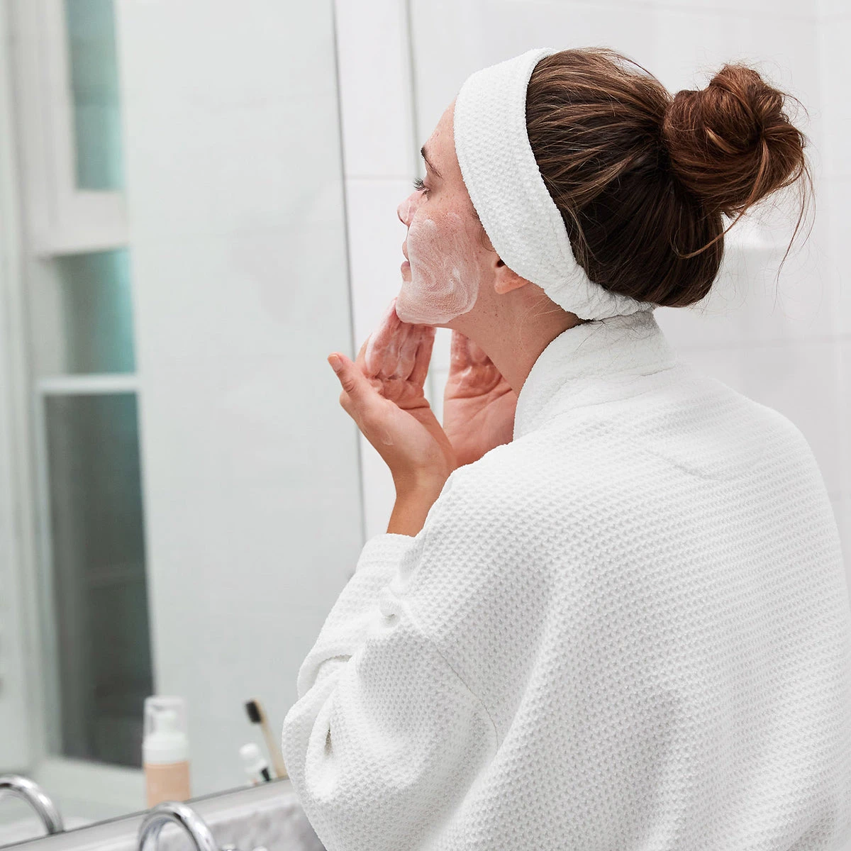 Don’t let stray hairs ruin your routine. Slip on a handy headband and keep your locks free from your face, then you’re ready to pull off some makeup magic. Hair back, glow UP.