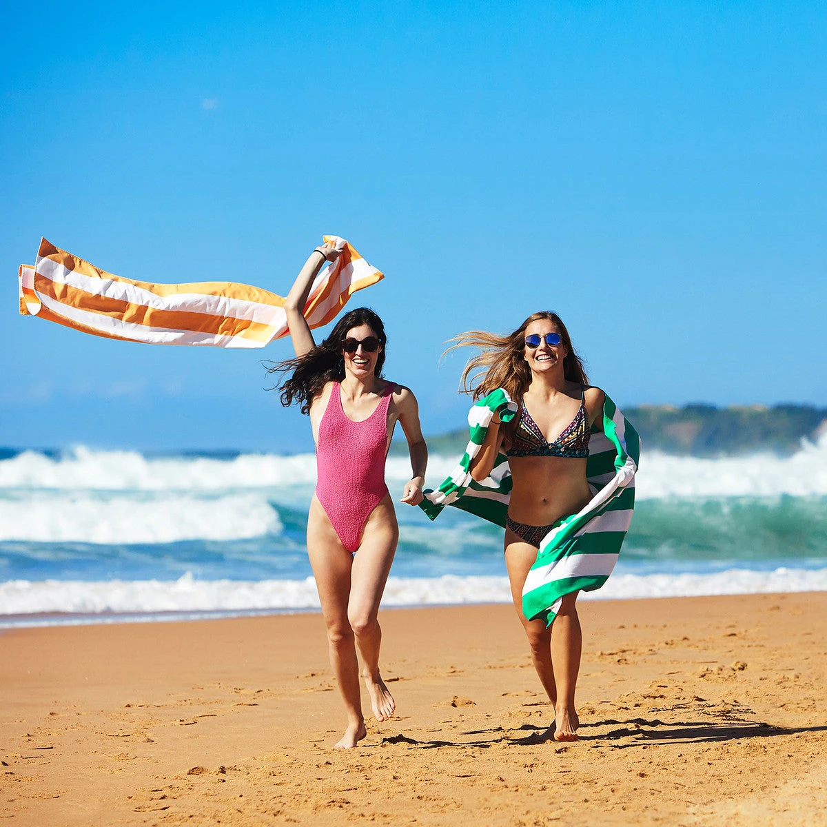This bundle includes an Extra Large Picnic Blanket (Bora Bora Beige), and 4 individually packed quick dry beach towels in the following styles: Waikiki Coral, Whitsunday Blue, Cancun Green, Ipanema Orange. All towels and blanket includes their own handy travel pouch.