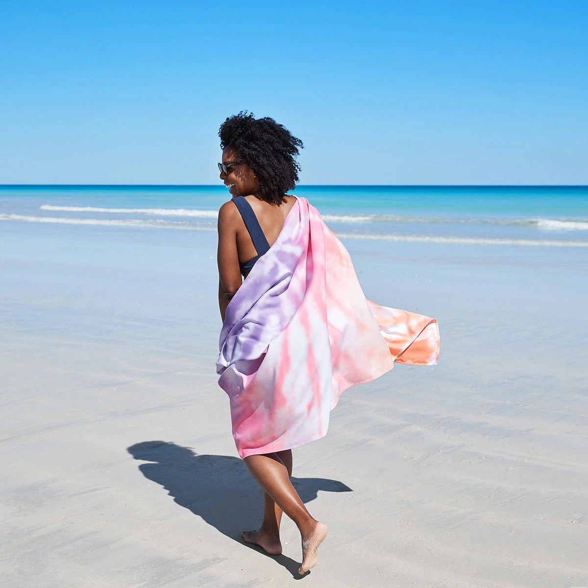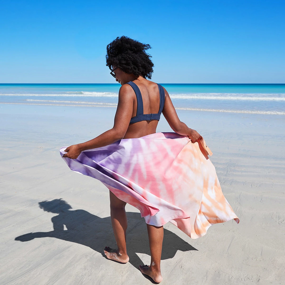 No time to wait for a towel to dry? Neither do we. Grab a quick dry beach must-have from the tie-dye-for Tie Dye collection to eliminate damp smells and lugging around a massive towel from your life.