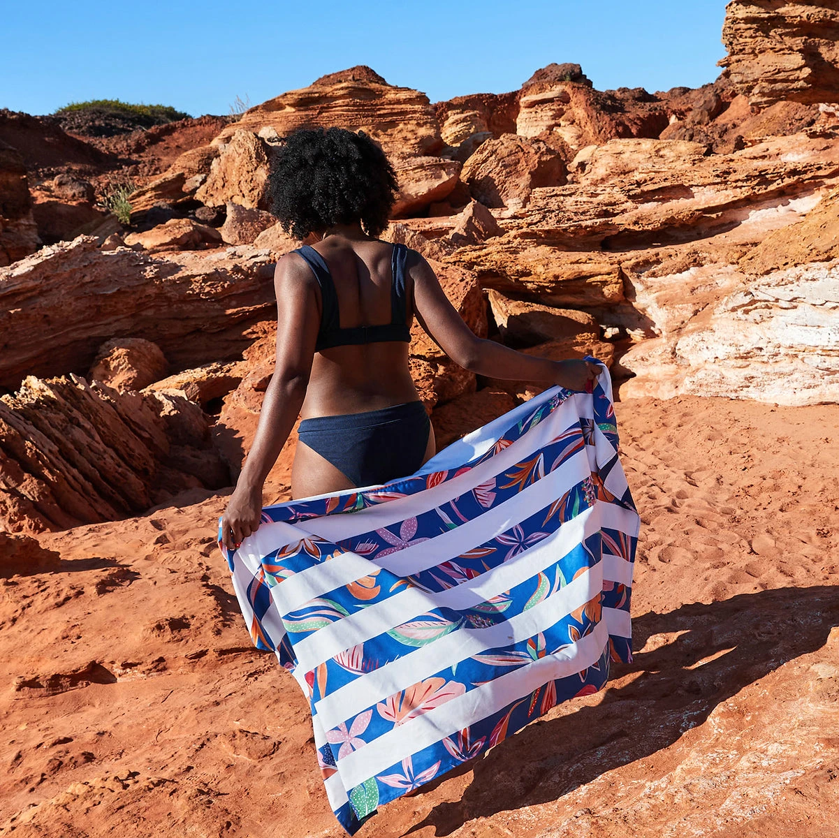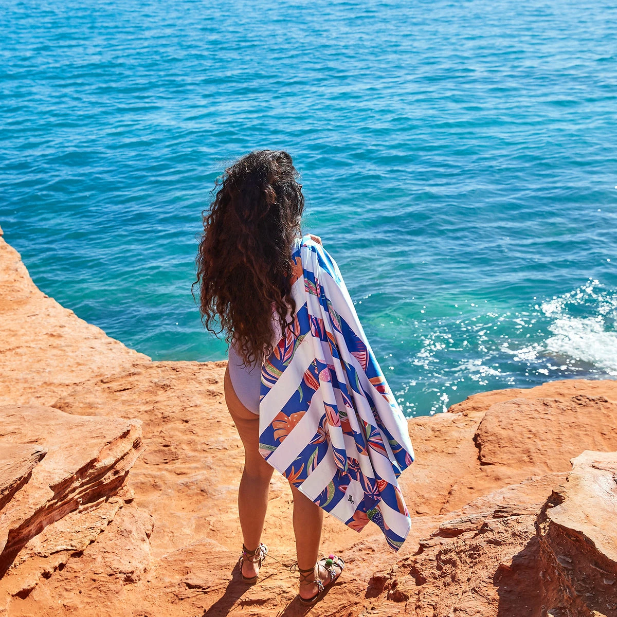 No time to wait for a towel to dry? Neither do we. Grab a quick dry beach must-have from the floral-inspired Flower Power collection to eliminate damp smells and lugging around a massive towel from your life.