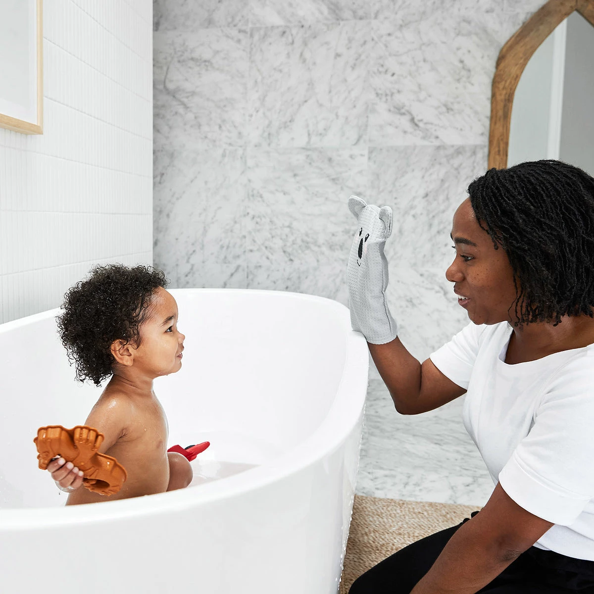 Bathtime buddies, on hand to help (literally). Slip them over your paws and dry off your little one so you can bring the joy back to bath time. Super soft, absorbent and joyful.